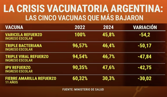 LAS VACUNAS QUE MÁS CAYERON EN ARGENTINA (2024)